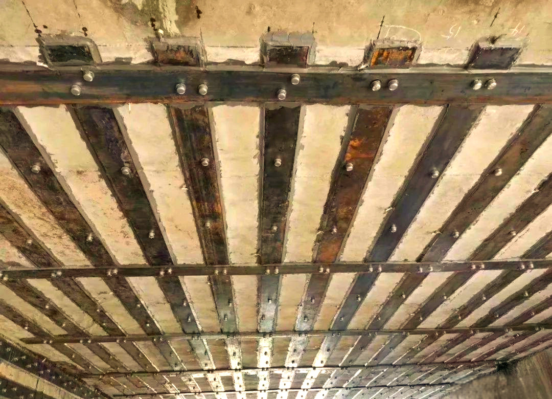 1、在钢板粘接完毕后,应适当施加压力,直至胶液从钢板边缘微微挤出。若钢板在顶板下侧进行加固,需同时设置可拆卸的支撑物,并依据结构胶的特性,合理控制支撑物的拆除时机及钢材的受力使用时间。